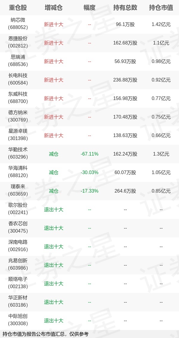 2026-04-23交易所,交易所排名,交易所排行,加密货币是什么,加密货币交易平台,加密货币平台,币安交易所,火币交易所,欧意交易所,Bybit,Coinbase,Bitget,Kraken,全球交易所排名,交易所排行证券之星消息,4月21日信达澳亚基金旗下冯明远管理的信澳新能源产业股票型基金公布一季报,近1年净值增长率67.0%。与上一季度相比,该基金前十大重仓股新增纳芯微,恩捷股份,思瑞浦,长电科技,东威科技,德方纳米,星源卓镁;其中纳芯微持仓占比2.65%,为该基金第一大重仓股;歌尔股份,香农芯创,深南电路,兆易创新,顺络电子,华正新材,中际旭创等退出前十大重仓股;详细数据如下: