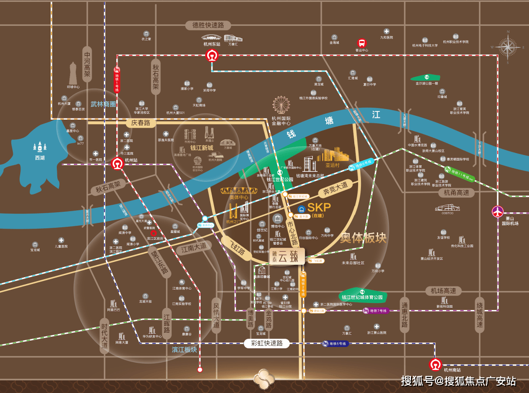 项目傲领钱江世纪城奥体核芯,东临市心北路,南侧飞虹路,坐拥“2横3纵3隧道4铁”交通便利,高效通达长三角及世界各大重要城市。