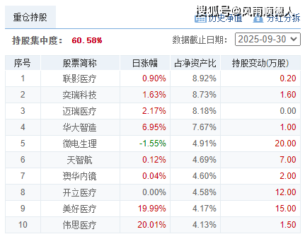 该基金十大持仓中美好医疗、伟思医疗20% 涨停,华大智造涨幅较大,前十持仓占总持仓的60.58%,基金风格属于医药行业,基金净值相对跑赢市场(属于医疗行业脑机接口方向的主动型混合基金)【基金规模0.90亿元】。净值增长较差的是前海开源周期精选混合C,