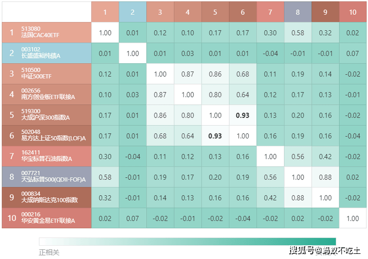 ③国内权益类指数基金与国外指数基金间相关性较弱;④黄金、原油类商品基金与其他基金间相关性较弱。
