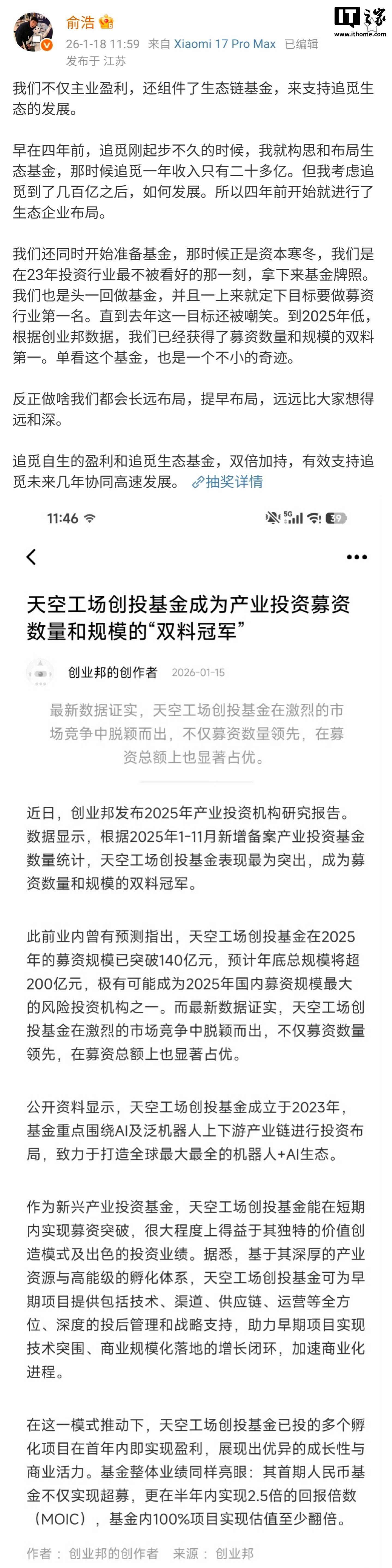 2026-01-18交易所,交易所排名,交易所排行,加密货币是什么,加密货币交易平台,加密货币平台,币安交易所,火币交易所,欧意交易所,Bybit,Coinbase,Bitget,Kraken,全球交易所排名,交易所排行IT之家 1 月 18 日消息,追觅科技创始人兼 CEO 俞浩今日发文称,公司不仅实现主业盈利,还组建了生态链基金,来支持追觅生态的发展。根据创业邦数据,目前追觅生态链基金已获得了