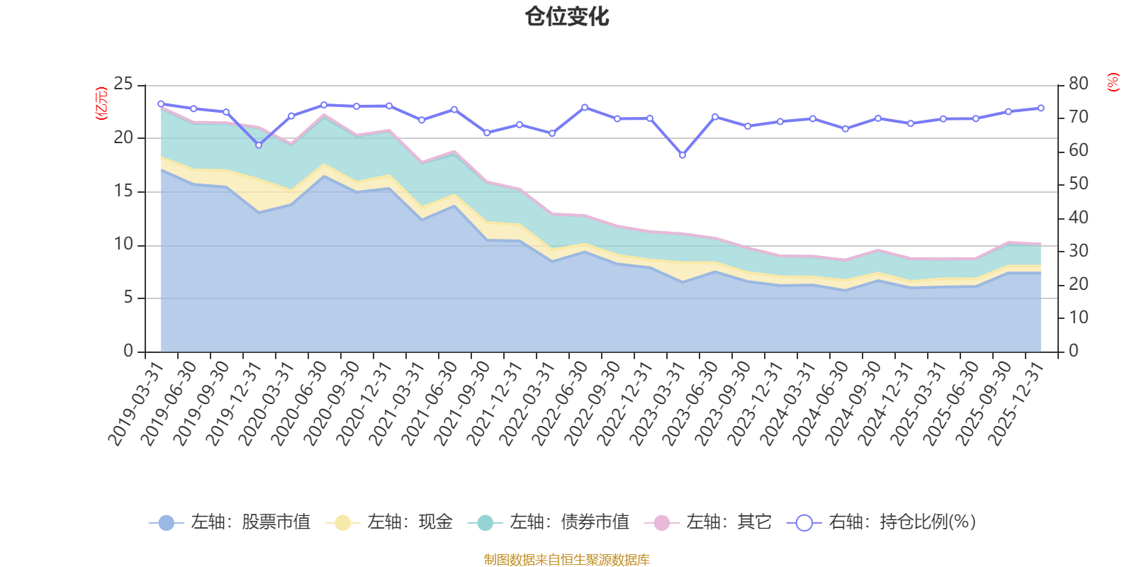 据定期报告数据统计,近三年平均股票仓位为68.88%,同类平均为72.46%。2019年一季度末基金达到74.36%的最高仓位,2023年一季度末最低,为59.01%。