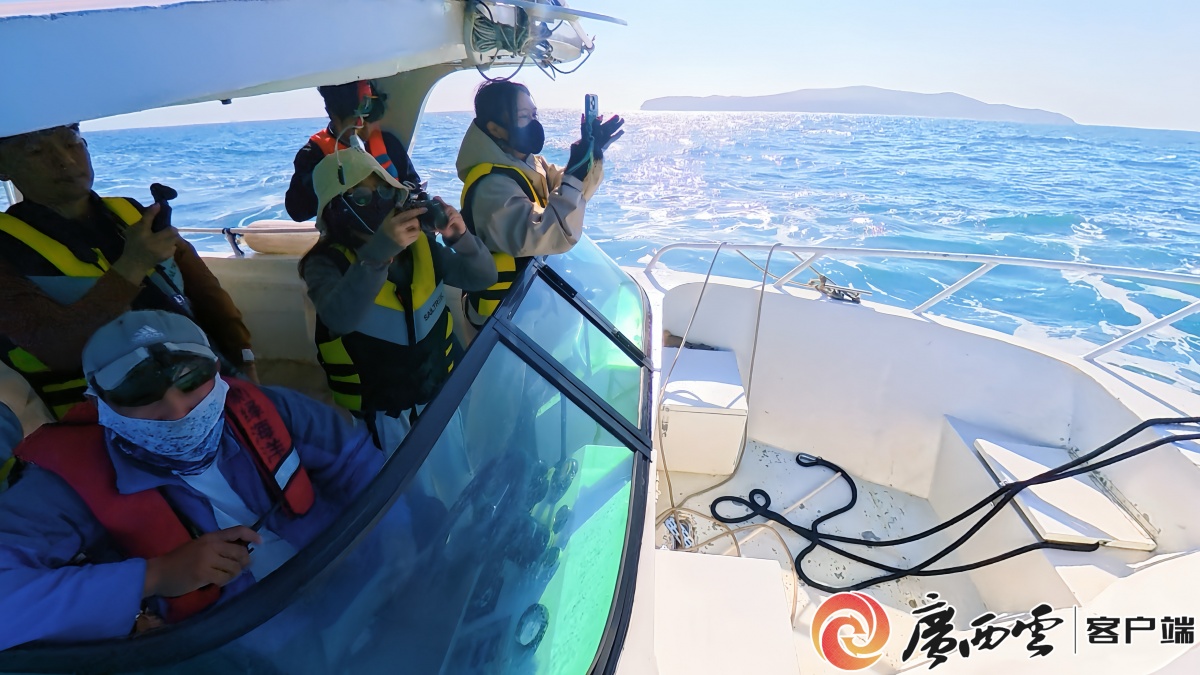 “见到鲸鱼后请勿大声喧哗、投喂物品……”出发前,工作人员反复提醒游客注意观鲸相关事项。伴着咸湿的海风,记者跟随10名游客登上一艘额定载客12人的观鲸游艇,向着涠洲岛南边的斜阳岛海域驶去。